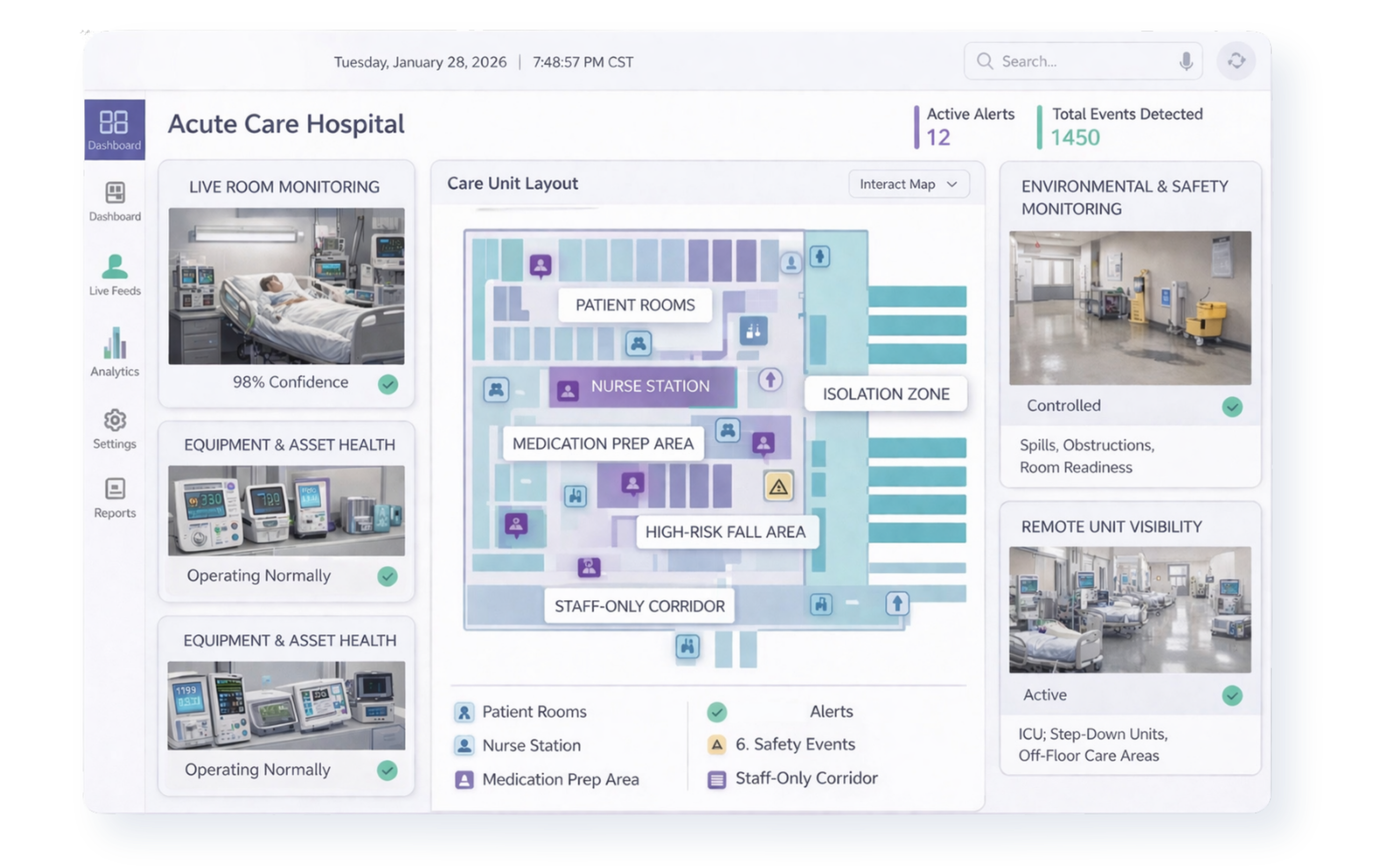 Monitor care environments in real time to address risks or inefficiencies before they disrupt care