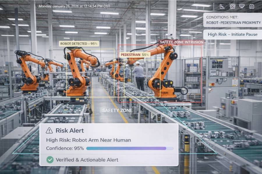 Rainscales' Intelligent Detection Platform monitors real-world behavior against safety protocols, identifying deviations such as line-of-fire exposure or improper machine interaction.